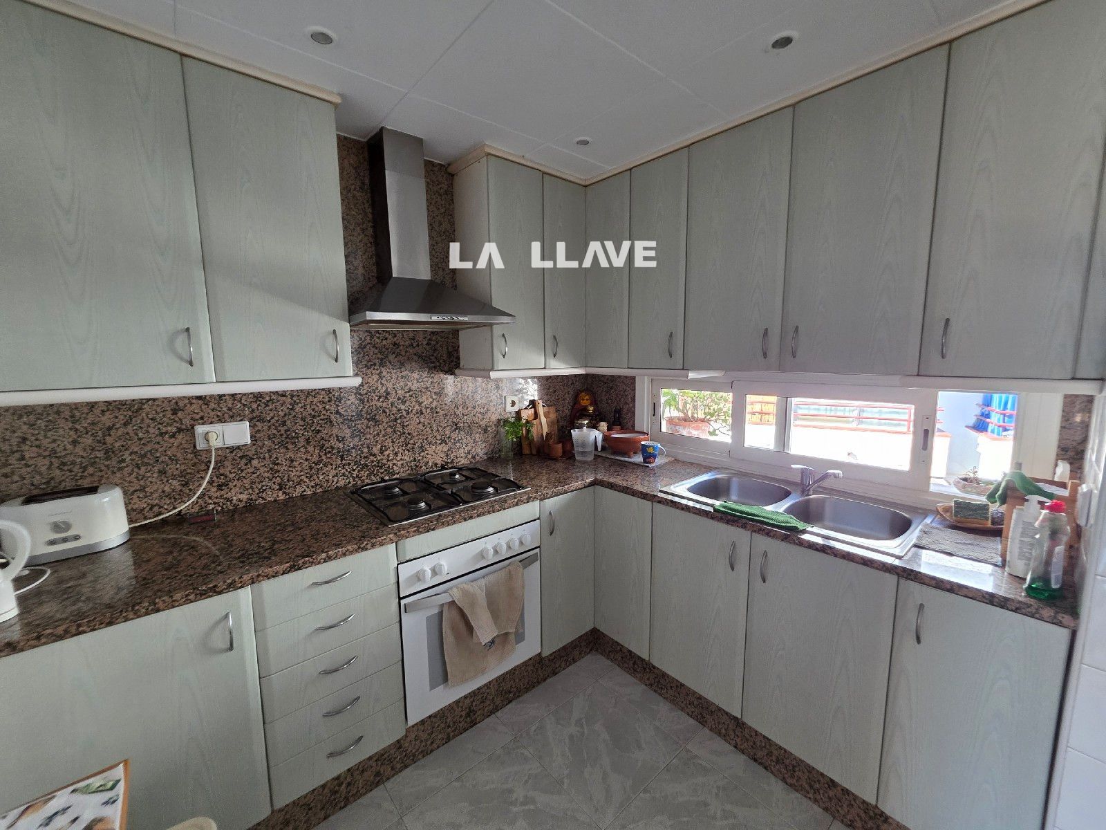 PLANTA PRIMERA: Gran salón comedor con terraza soleada de unos 20 m2 con vistas despejadas al castillo de sant joan. Tien salida para poner una chimenea. La cocina es amplia e independiente completamente equipada y dispone de un lavadero.